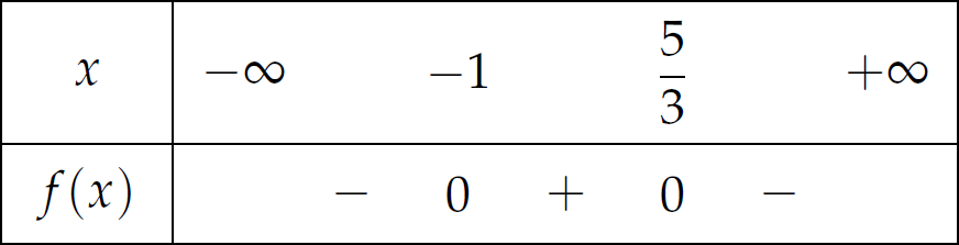 Suy ra \(f(x)\) âm trên \(\left(-\infty;-1\right)\cup\left(\dfrac{5}{3};+\infty\right)\).