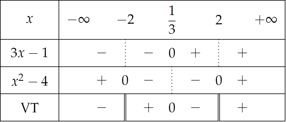 Vậy \(T=\left(-2;\dfrac{1}{3}\right]\cup(2;+\infty)\) là tập nghiệm cần tìm.