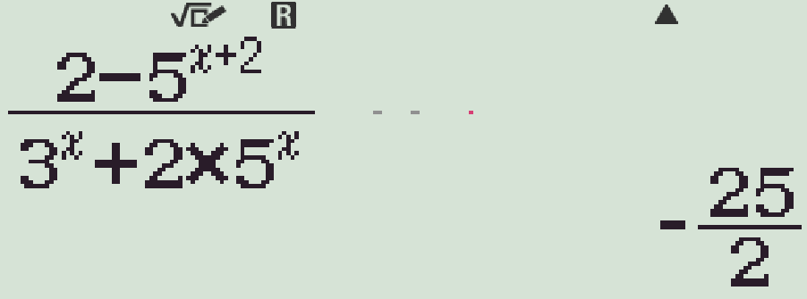 \lim\dfrac{2-5^{n+2}}{3^n+2\cdot5^n}&=\lim\dfrac{2-5^2\cdot5^n}{3^n+2\cdot5^n}\\
