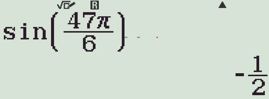 | \(\sin\dfrac{47\pi}{6}=-\dfrac{1}{2}\) |