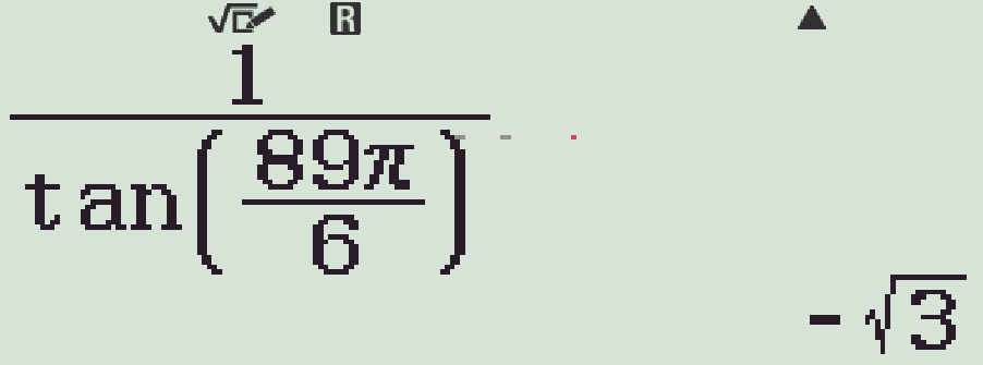 | \(\cot\dfrac{89\pi}{6}=-\dfrac{\sqrt{3}}{3}\) |