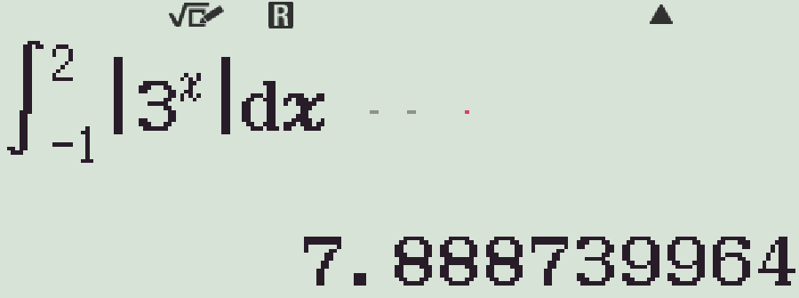 S&=\displaystyle\int\limits_{-1}^2\left|3^x\right|\mathrm{\,d}x=\displaystyle\int\limits_{-1}^23^x\mathrm{\,d}x\\