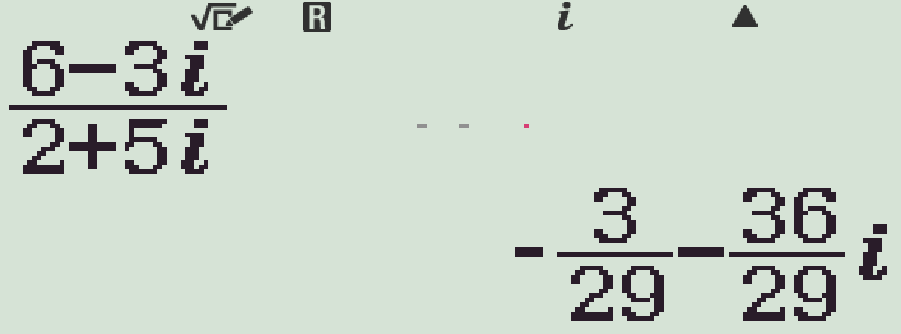 | Phần thực là \(-\dfrac{3}{29}\) và phần ảo là \(-\dfrac{36}{29}i\) | |