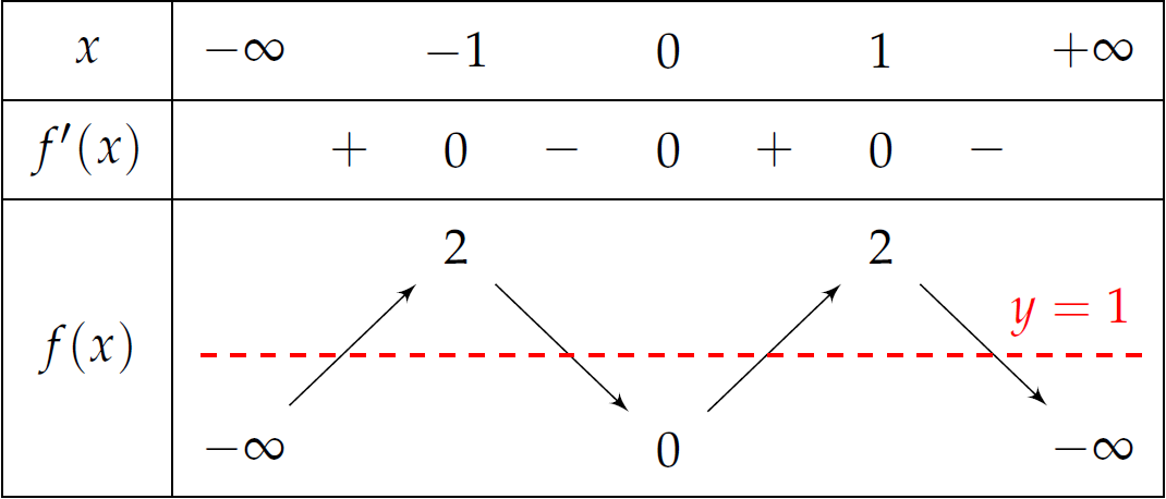 Dựa vào bảng biến thiên, ta có $$f\left(x\right)=1\Leftrightarrow\left[\begin{array}{ll}