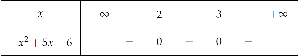 Dấu của tam thức bậc hai \(f(x)=-x^2+5x-6\) được xác định như sau: