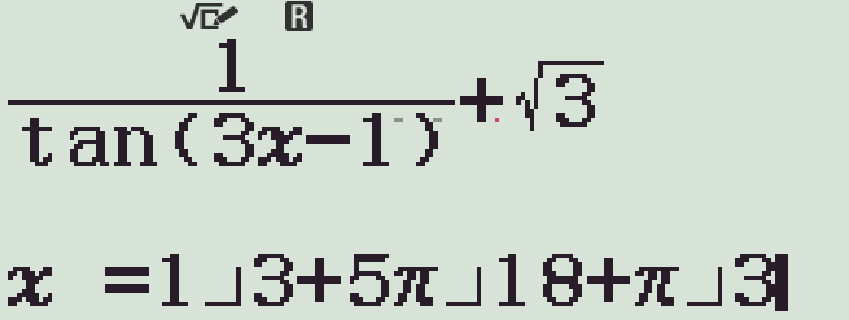 \cot(3x-1)=-\sqrt{3}\Leftrightarrow&3x-1=\dfrac{5\pi}{6}+k\pi\\