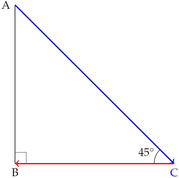 Cho tam giác \(ABC\) vuông cân tại \(B\), có \(BC=a\sqrt{3}\). Tính \(\overrightarrow{AC}\cdot\overrightarrow{CB}\).