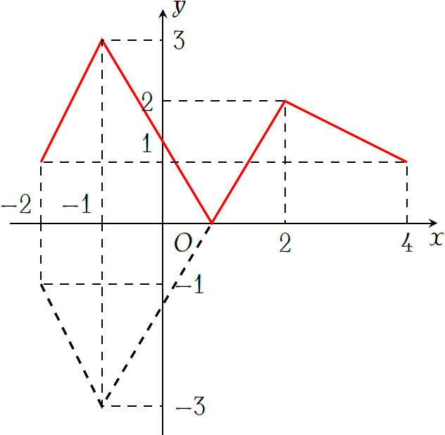 Cho hàm số \(y=f(x)\) có đồ thị như hình vẽ. Tìm \(\max\limits_{[-2;4]}\left|f(x)\right|\).