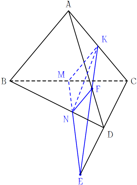 Cho tứ diện \(ABCD\). Gọi \(M,\,K\) lần lượt là trung điểm của \(BC\) và \(AC\), \(N\) là điểm trên cạnh \(BD\) sao cho \(BN=2ND\). Gọi \(F\) là giao điểm của \(AD\) và \((MNK)\).