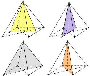Hình chóp tứ giác đều có \(4\) mặt phẳng đối xứng.