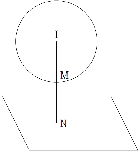 Gọi \(\Delta\) là đường thẳng đi qua ba điểm \(I,\,M,\,N\). Khi đó \(\Delta\) đi qua \(I(2;1;1)\) và vuông góc với \((\alpha)\) nên nhận vectơ \(\overrightarrow{n}=(1;2;2)\) làm vectơ chỉ phương. $$\Delta\colon\begin{cases}