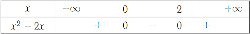 Xét dấu biểu thức \(x^2-2x\) ta có