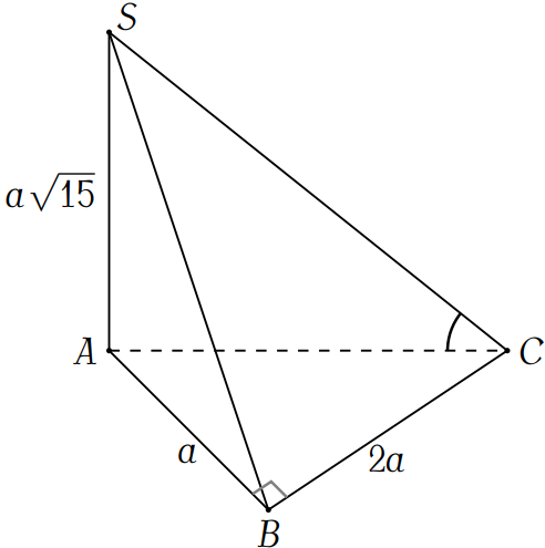Cho hình chóp \(S.ABC\) có đáy \(ABC\) là tam giác vuông tại \(B\), \(AB=a\), \(BC=2a\), \(SA\) vuông góc với mặt phẳng đáy và \(SA=\sqrt{15}a\) (tham khảo hình vẽ).