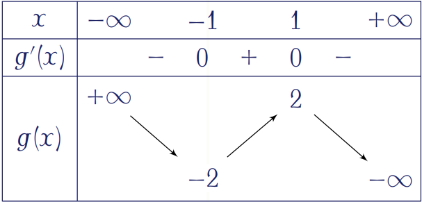 Xét hàm số \(g(x)=-x^3+3x\) ta có \(g'(x)=-3x^2+3\).