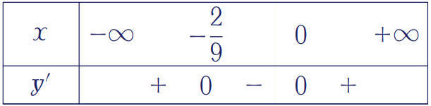 Suy ra \(y'\leq0\Leftrightarrow x\in\left[-\dfrac{2}{9};0\right]\).