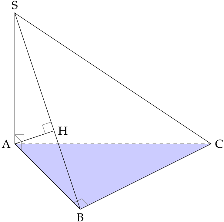 Cho hình chóp $S.ABC$ có đáy là tam giác $ABC$ vuông tại $B$, cạnh bên $SA$ vuông góc với đáy. Gọi $H$ là chân đường cao kẻ từ $A$ của tam giác $SAB$. Khẳng định nào dưới đây sai?