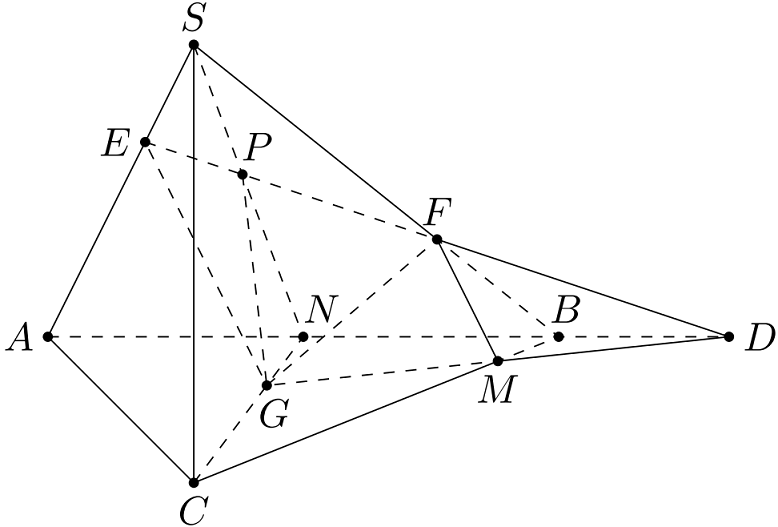 Lại có $G\in(EFG)\cap(SGC)$, suy ra $(EFG)\cap(SGC)=PG$.