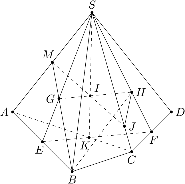 Ta có $\begin{cases}J\in SC,\,SC\subset(SCD)\Rightarrow J\in(SCD)\\ J\in IM,\,IM\subset(BGH)\Rightarrow J\in(BGH)\end{cases}$