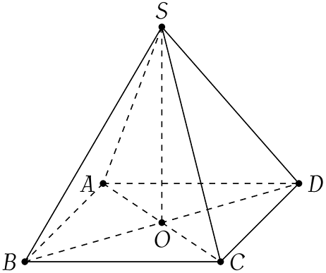 Xét hình chóp tứ giác đều $S.ABCD$. Gọi $O$ là giao điểm $AC$ và $BD$, khi đó $SO\perp(ABCD)$.