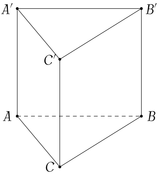 Giả sử $ABC.A'B'C'$ là lăng trụ tam giác đều, có tất cả các cạnh đều bằng nhau và bằng $x$.