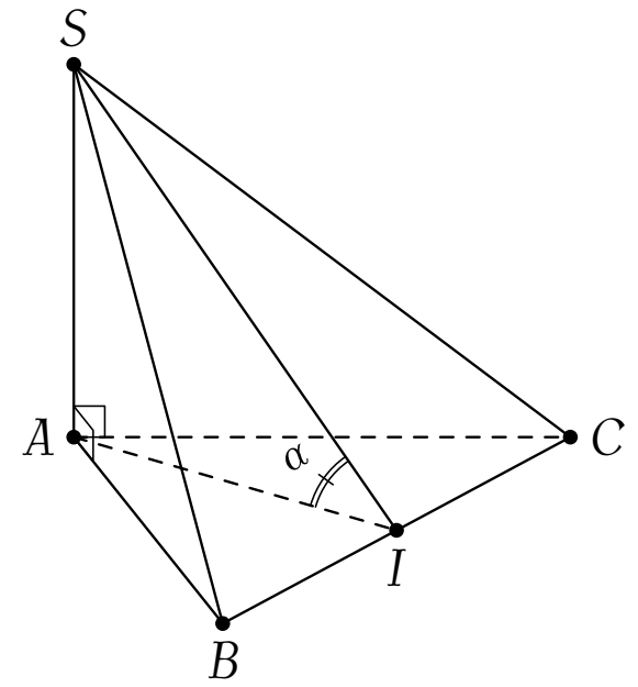 Vậy $\alpha=\left((SBC),(ABC)\right)=\widehat{SIA}$.