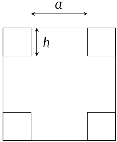 Chiều cao của hình hộp bằng cạnh của hình vuông cắt đi là $h=12$cm.