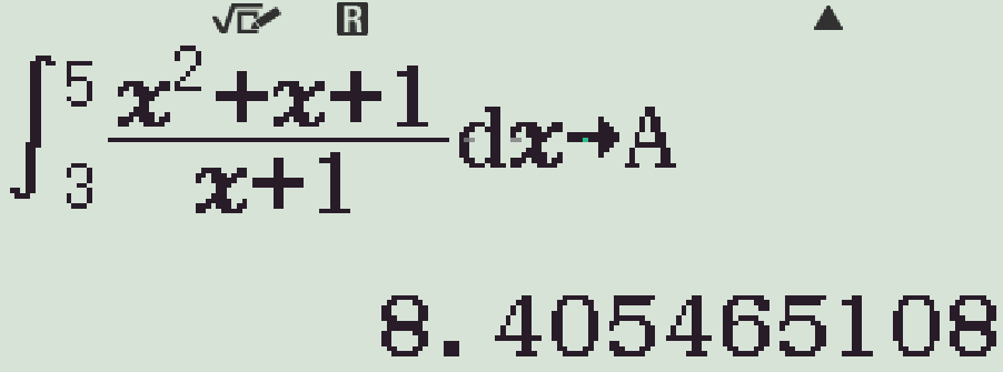 \(\begin{aligned}\displaystyle\int\limits_3^5\dfrac{x^2+x+1}{x+1} \mathrm{\,d}x&=\int\limits_3^5\left(x+\dfrac{1}{x+1}\right)\mathrm{\,d}x\\