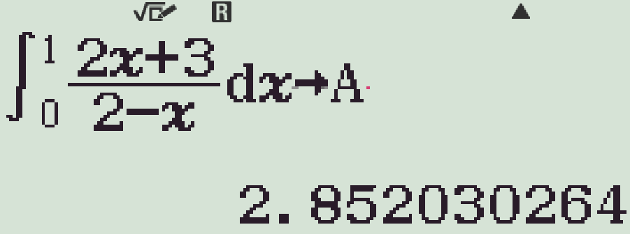 \(\begin{aligned}\displaystyle\int\limits_0^1\dfrac{2x+3}{2-x}\mathrm{\,d}x&=\displaystyle\int\limits_0^1\left(-2+\dfrac{7}{2-x}\right)\mathrm{\,d}x\\