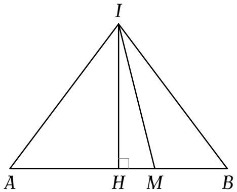 Gọi $H$ là trung điểm của đoạn $AB$, ta có $$IH^2=IB^2-HB^2=2^2-\left(\dfrac{3}{2}\right)^2=\dfrac{7}{4}.$$