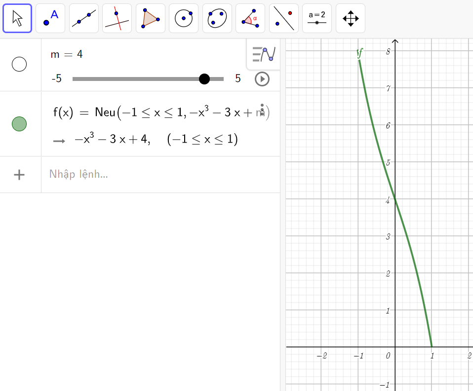 Ta có $f'(x)=-3x^2-3<0$, $\forall x\in[-1;1]$. Suy ra $f(x)$ nghịch biến trên đoạn $[-1;1]$.