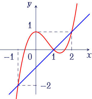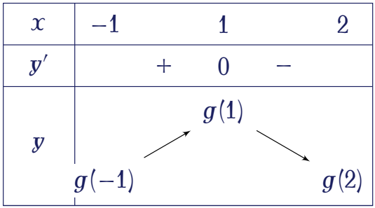 Cho $g'(x)=0\Leftrightarrow f'(x)=x-1\Leftrightarrow\left[\begin{array}{ll}x=-1 &\in[-1;2]\\ x=1 &\in[-1;2]\\ x=2 &\in[-1;2]\end{array}\right.$.