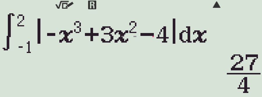 S&=\displaystyle\int\limits_{-1}^2\left|-x^3+3x^2-4\right|\mathrm{\,d}x\\