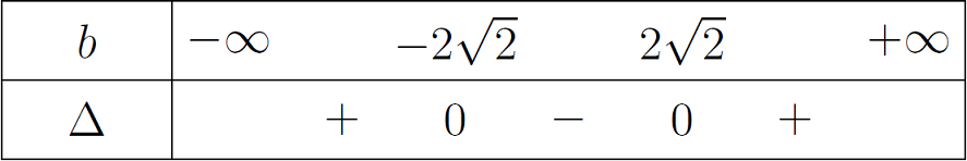 Suy ra \(b\in(-\infty;-2\sqrt{2})\cup(2\sqrt{2};+\infty)\).