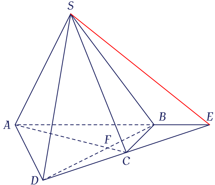 Trong $(\alpha)$, cho tứ giác $ABCD$ có $AB$ cắt $CD$ tại $E$, $AC$ cắt $BD$ tại $F$, $S$ là điểm không thuộc $(\alpha)$. Giao tuyến của $(SAB)$ và $(SCD)$ là