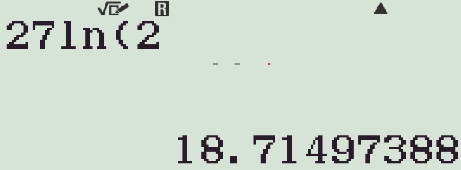 &=&\dfrac{63}{8}+\left(27\ln2-\dfrac{63}{8}\right)\\