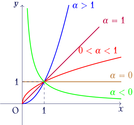 Đồ thị hàm số lũy thừa $y=x^\alpha$ trong các trường hợp