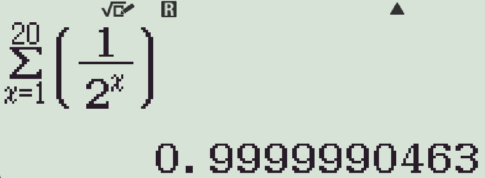 Đây là tổng của một cấp số nhân lùi vô hạn, có $u_1=\dfrac{1}{2}$ và $q=\dfrac{1}{2}$. Do đó $$S=\dfrac{u_1}{1-q}=\dfrac{\dfrac{1}{2}}{1-\dfrac{1}{2}}=1.$$