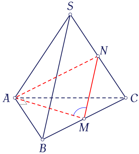 Do đó $(AM,SB)=(AM,MN)=\widehat{AMN}$.