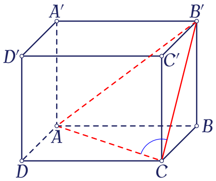 Cho hình lập phương $ABCD.A'B'C'D'$. Tính góc giữa 2 đường thẳng $AC$ và $B'C$.