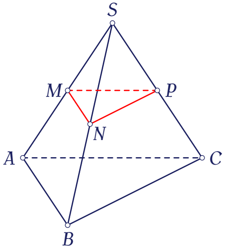 Cho hình chóp $S.ABC$. Gọi $M,\,N,\,P$ lần lượt là trung điểm của $SA,\,SB,\,SC$. Chọn khẳng định đúng.