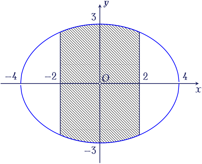 Một mảnh vườn hình elip có độ dài trục lớn $8$m và độ dài trục nhỏ $6$m. Người ta cần trồng rau trên dải đất rộng $4$m như hình vẽ.