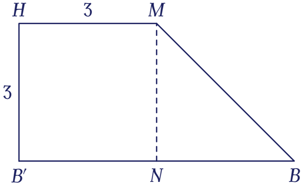 Suy ra $MB_{\text{min}}=\sqrt{MN^2+NB^2}=\sqrt{3^2+2^2}=\sqrt{13}\in(3;4)$.