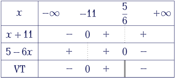 Giải bất phương trình $\dfrac{x+11}{5-6x}$.