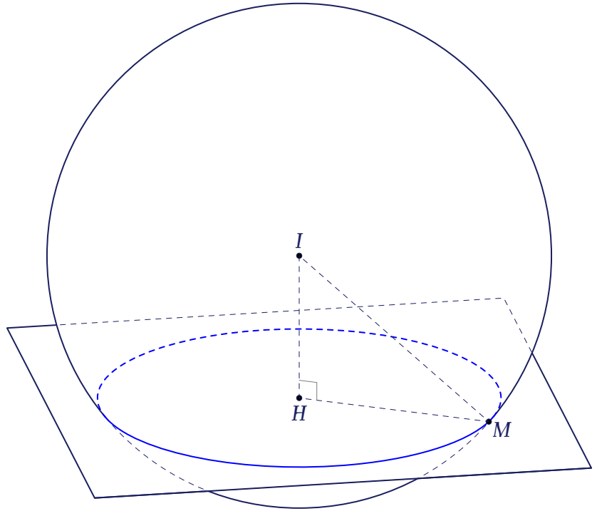 Giả sử mặt phẳng cắt mặt cầu theo giao tuyến là đường tròn như hình vẽ.