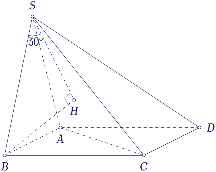 Suy ra $\big(SB,(SAC)\big)=(SB,SH)=\widehat{BSH}=30^\circ$.