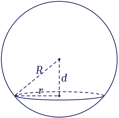 Gọi $R,\,r$ lần lượt là bán kính của mặt cầu và đường tròn giao tuyến. Gọi $d$ là khoảng cách từ tâm mặt cầu đến mặt phẳng.