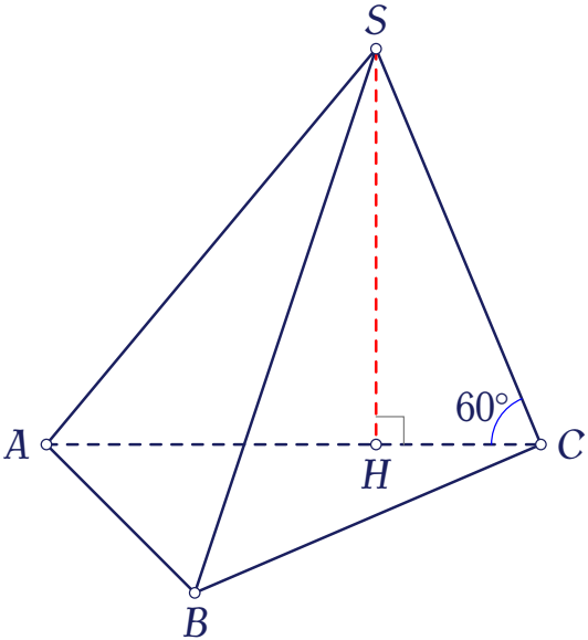 Suy ra $SH=CH\cdot\tan\widehat{SCH}=\dfrac{a}{3}\tan60^\circ