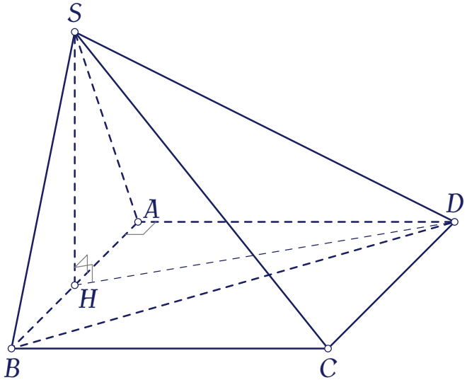 V_{S.ABD}&=\dfrac{1}{3}\cdot S_{ABD}\cdot SH=\dfrac{1}{3}\cdot\left(\dfrac{1}{2}\cdot AB\cdot AD\right)\cdot SH\\