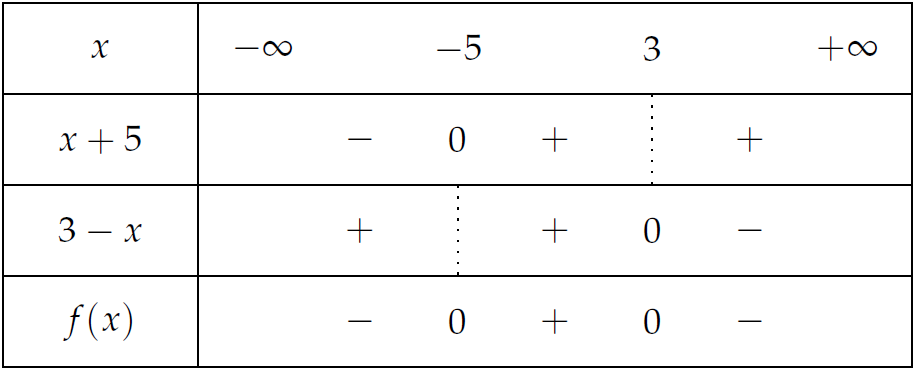 Theo đó, \(f(x)\leq0\Leftrightarrow x\in(-\infty;-5]\cup[3;+\infty)\).