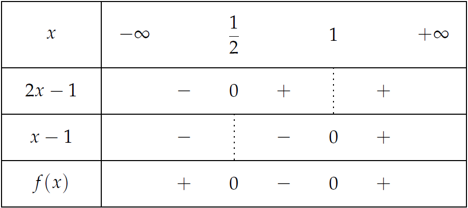 Theo đó, \(f(x)\geq0\Leftrightarrow x\in\left(-\infty;\dfrac{1}{2}\right]\cup[1;+\infty)\).